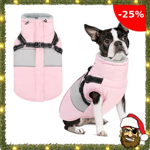 AOFITEE Hundejacke Mittelgroße Hunde, Winter Wasserdicht Hundejacke Hundemantel mit Geschirr, Warmer Pirate-D:eals Wintermantel Reflektierend Winter Outdoor Hundebekleidung für Dackel, Boston Terrier, Rosa M