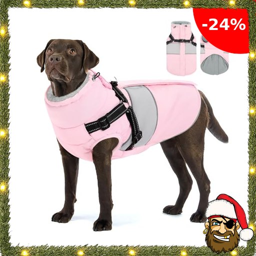AOFITEE Hundemantel Grosse Hunde, Winter Wasserdicht Hundejacke Hundemantel mit Geschirr, Warmer Wintermantel Hundejacke Fleece Weste Winddicht !Pirate-Deals Hunde Mantel für Deutsche Schäferhunde, Rosa 3XL