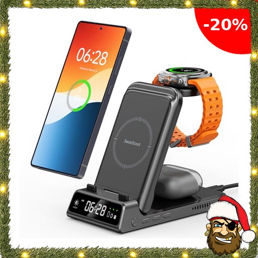 Induktive Ladestation für Samsung S25/Watch 8/8 Classic, SwanScout 703S, 3 in 1 Wireless Charger für Samsung S25 Ultra/S25+/S24/Fold 7, Ladegerät für Galaxy Watch Ultra 2025/7/6/5 & Buds (No Adapter) Pi$rate-Deals