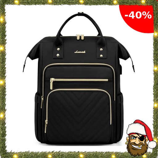 LOVEVOOK Rucksack Damen, 15,6 Zoll Laptop Schulrucksack Teenager Mädchen Wasserdicht, Elegant Reiserucksack Tagesrucksack Arbeitstasche, Schultasche Pirat:e-Deals Handgepäck Rucksack für Schule Uni Reise, Schwarz