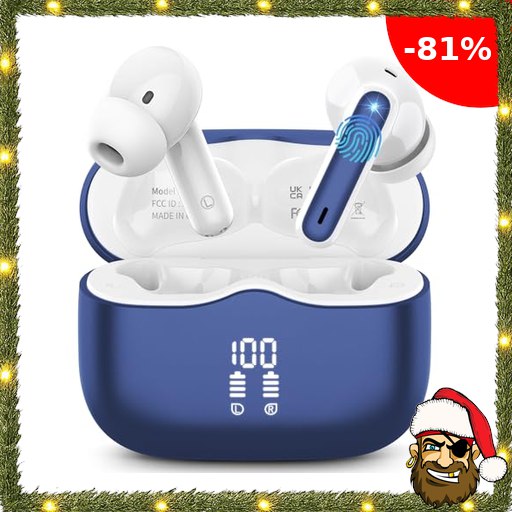 Pirate-D:eals Bluetooth Kopfhörer, In Ear Kopfhörer Kabellos Bluetooth 5.4 mit 4 ENC Noise Cancelling Mics, 2025 Kabellose Kopfhörer 40Std Tiefer Bass IP7 Wasserdicht Sport Ohrhörer für Arbeit und Studium Deep Blue