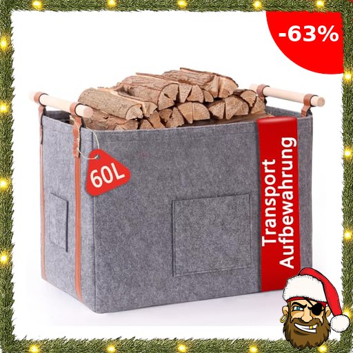 Pynhoklm® Kaminholzkorb 60L Holzkorb für Kaminholz 4mm dicker Filzkorb Brennholzkorb Pirate:-Deals Kaminkorb mit Holzgriff Feuerholzkorb Korb für Kaminholz, Zeitungen, Kleidung für Transport & Aufbewahrung