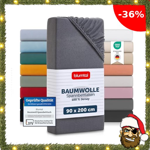 Last Minute Geschenke sichern Blumtal® Basics Spannbettlaken 90x200cm Jersey – b…