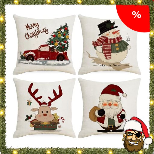 Bseical Weihnachtskissen Kissenbezug Weihnachten Pirate!-Deals Kissenbezug Weihnachtsdeko Innen Rentier Deko Weihnachtskissenbezug Winter 4 Stück Decoration Leinen Kissenhülle Weihnachten (B(45 x 45 cm, 4 Stück))