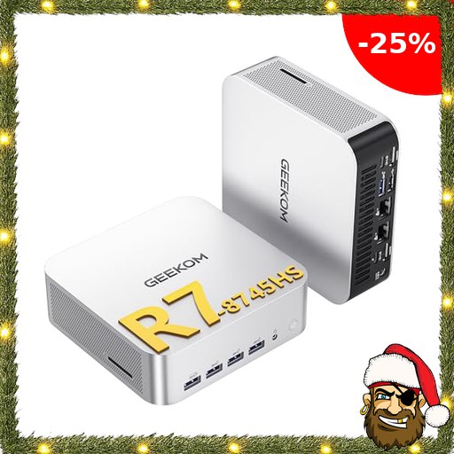 GEEKOM Mini PC A8 Max mit AMD Ryzen 7 8745HS, 2,5Gbps Dualer LAN Port, 3 Jahre Garantie, DDR5 RAM + 1TB M.2 NVMe SSD, Mini Computer W-11 Pro | 8 USB | 8K Quad-Display, für Pirate-Deal:s Gaming/Kreativität/Office
