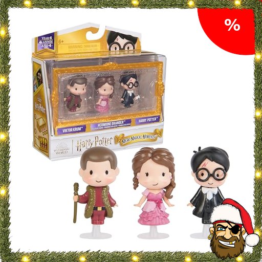 Harry Potter Pirate-$Deals – Micro Magical Moments Sammelfiguren Multipack „Weihnachtsball“ mit Harry, Hermine und Viktor Krum, ca. 3,8 cm groß, mit Setzkasten, Spielzeug für Kinder ab 6 Jahren, Fanartikel