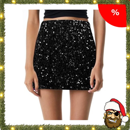 Pailletten Rock Damen Glitzer Rock Damen Sexy Rave Faschingskostüme Silvester Pi!rate-Deals Outfit Glitzerrock Party Karneval Kostüm Minirock Pailettenrock Kurz Karnevalskostüme Schwarz L