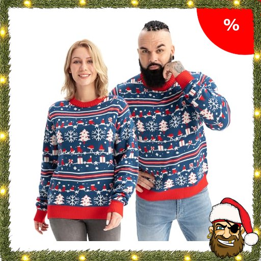 U LOOK UGLY TODAY Hässlicher Weihnachtspullover Herren Unisex Lustig Ugly Christmas Sweater Pirate:-Deals Chunky Gestrickter Festlicher Fairisle Pullover für Weihnachten