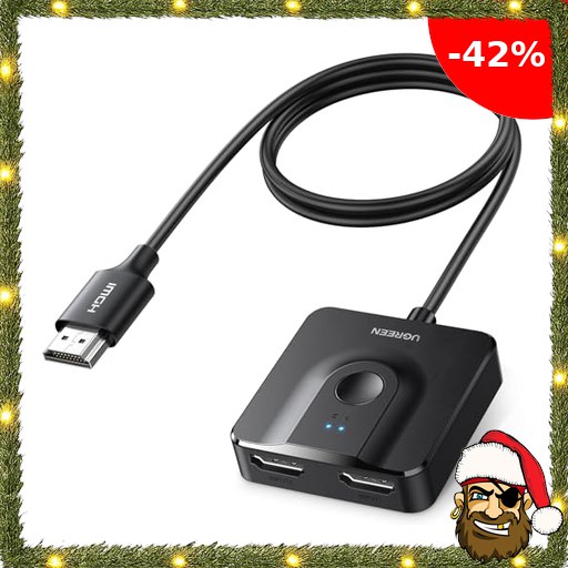 UGREEN HDMI Switch 4K 60Hz HDMI Splitter 2 in 1 Out oder 1 Pir:ate-Deals in 2 Out Verteiler Bidirektional HDCP 2.2 3D HDR CEC für PS5/4, Xbox, TV, PC, Monitor, Projektor usw.