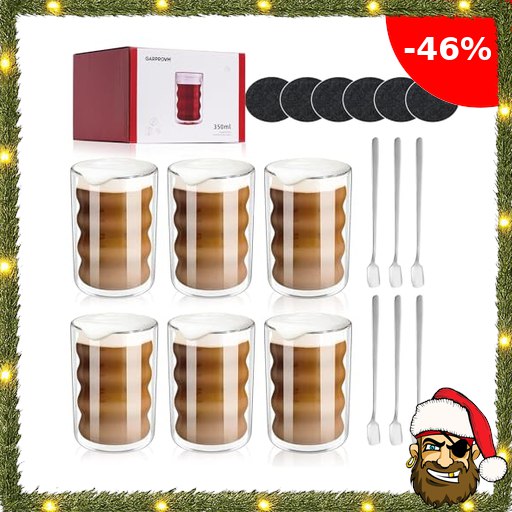 Last Minute Geschenke sichern GARPROVM Latte Macchiato Gläser, 6er Set Doppelwan…
