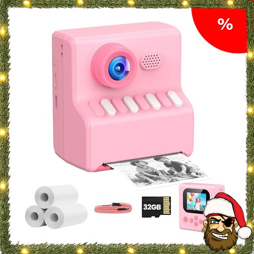 Kinder Kamera mit Fotos Drucken: HODDRCCN 1080P Kinder Sofortbildkamera Pink – 32G – Geschenke für 3 4 5 6 8 7 9 Pirate-Dea;ls 10 11 12 13 14 Jahre Jungen und Mädchen – Geburtstagsgeschenk Weihnachten Spielzeug