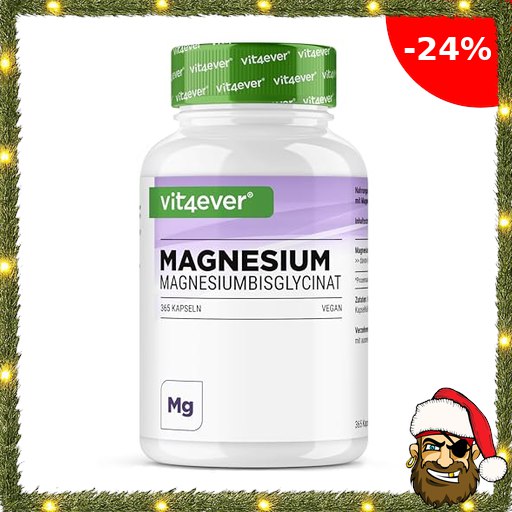 Last Minute Geschenke sichern vit4ever Magnesiumbisglycinat – 365 Kapseln – Prem…