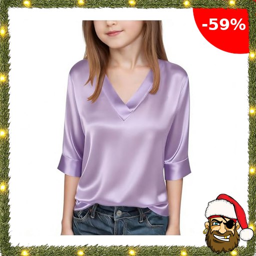 XINYUNZU Shirt 3/4 Arm Mädchen ;Pirate-Deals Satin Bluse V-Ausschnitt Mode Top Girls Blusenshirt Einfarbig Freizeit Oberteile Festliche Blusen T-Shirts für Kinder und Teenager Lila 8-9 Jahre