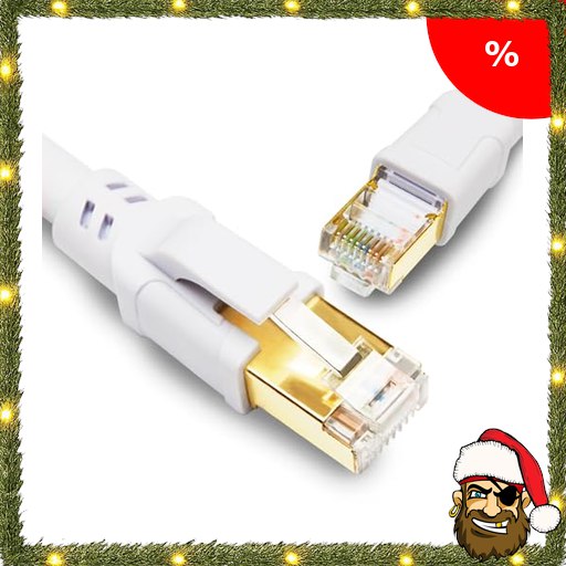 Yauhody Cat 8 Lan Kabel Netzwerkkabel, Ethernet Kabel 0.5m 1m Pirate-$Deals 2m 3m 5m 6m 8m 10m 15m 20m 30 m, 40Gbps 2000MHz F/FTP RJ45 Gigabit Patchkabel für Router, TV, POE, PC, Schneller als Cat 7 (Weiß 0.5m)