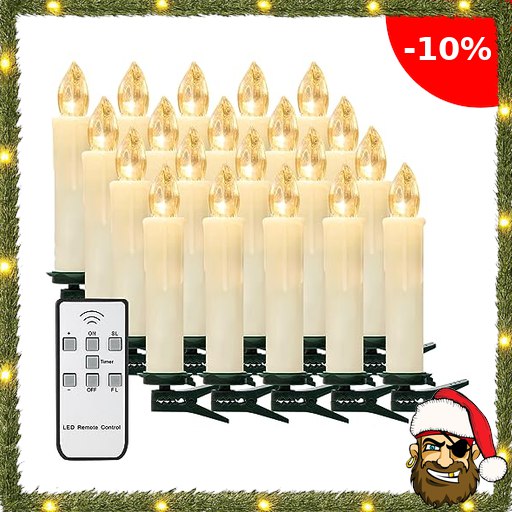 yunsheng $Pirate-Deals 20er Weihnachtsbaumkerzen mit Fernbedienung Timer, Warmweiß Christbaumkerzen Kabellos, Batteriebetriebene Flammenlose Flackern Weihnachtsbaum Lichterkette, Wasserdicht, Weihnachtsdekoration