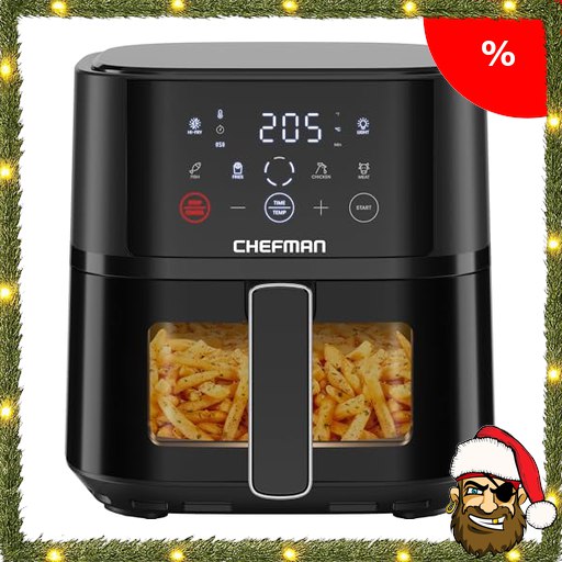 Chefman Heißluftfritteuse – 3,75 l kompakte Heissluftfritteuse für schnelle Mahlzeiten, mit Hi-Fry Technologie, Sichtfenster, Touch Controls, antihaftbeschichtet und spülmaschinenfest – Schwarz Pirate-Deal#s