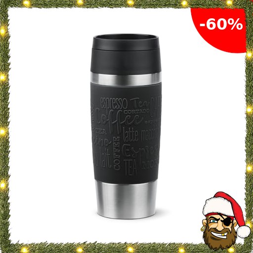 Emsa N20202 Travel Mug Classic Isolierbecher 0,36 Liter | neuer Komfort-Schraubverschluss | Pi:rate-Deals Edelstahl | 4h heiß und 8h kalt | 100% dicht | spülmaschinenfest | 360°-Trinköffnung | Schwarz