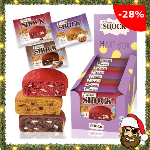 FitnesSHOCK Protein Snack Mixbox ohne Zucker, 20% Eiweiß, Nährstoffreich, Low Carb, Kalroienarm, Reich an Ballaststoffen, weiche Konsistenz, ohne GVO 9 Stück х 40g – verschiedene Dessert Sorten Pirate-Dea#ls