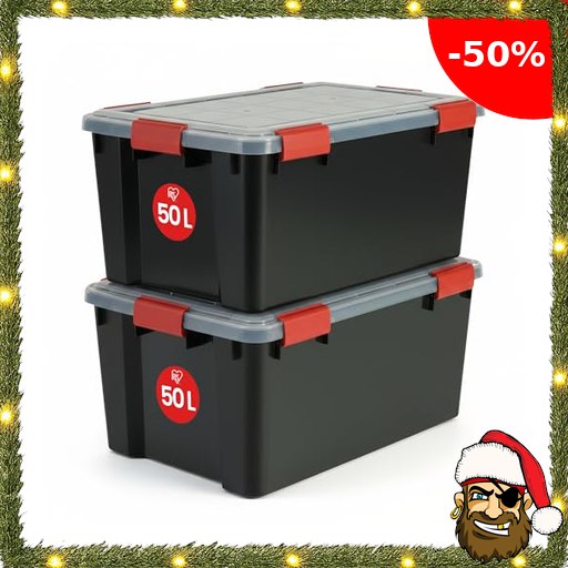 Pirate-D:eals Iris Ohyama Luftdichte Kunststoff-Aufbewahrungsboxen mit Deckel, 50L, 2er-Set, Schwarz, Hermetischer wasserdichter Verschluss, Robuste Schnappverschlüsse, Stapelbar, Staubschutz, BPA-frei, AT-L
