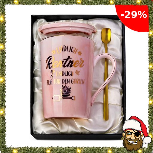 Ruhestand Geschenk Frauen, Renteneintritt Geschenk Frau, 400 ml Rosa Marmor Rentnerin Tasse mit Golddruck, Weihnachten Pirate#-Deals Geschenke für Rentner, Lustige Becher mit Deckel Löffel, Grußkarten, Geschenkbox
