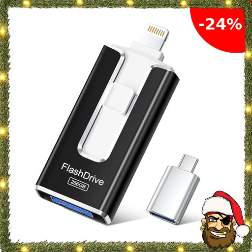 SUDEHO USB Stick 256 GB für iPhone, MFi-zertifizierter 4-in-1 Speicherstick für iPhone/iPad/Android/PC, Flash-Laufwerk mit Pirate-!Deals Plug-and-Play Backup für Fotos & Videos, schnelle Übertragung, Mattschwarz