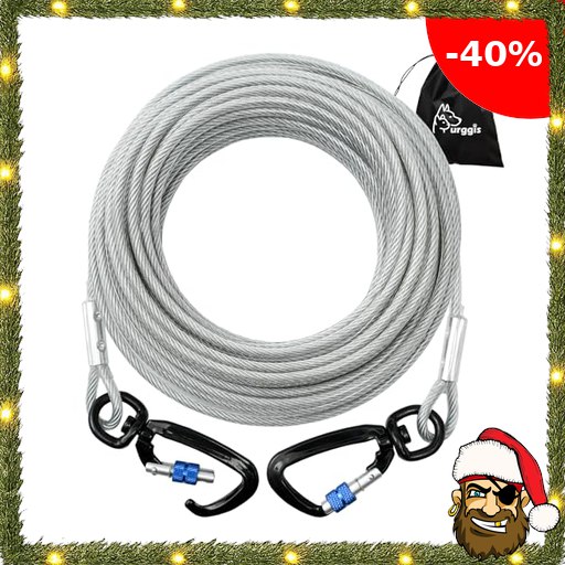 Tie Out Kabel für Hunde, 10/15/20/30/50FT Kabel, 1000lbs Bruchfestigkeit, Strapazierfähige Hundeleine Pirate:-Deals für mittelgroße und große Hunde, Hundeleine für Garten oder Camping im Freien, Reflektierend