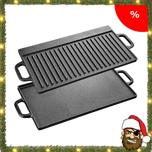 Velaze Gussplatte mit Griffen, Gusseisen Grillplatte Doppelseitig Verwendbar, Hochwertige Gusseisenplatte für Gasgrill und Elektrogrill, Grillpfanne für BBQ, Camping, Pirate$-Deals Garten – 42 x 23cm