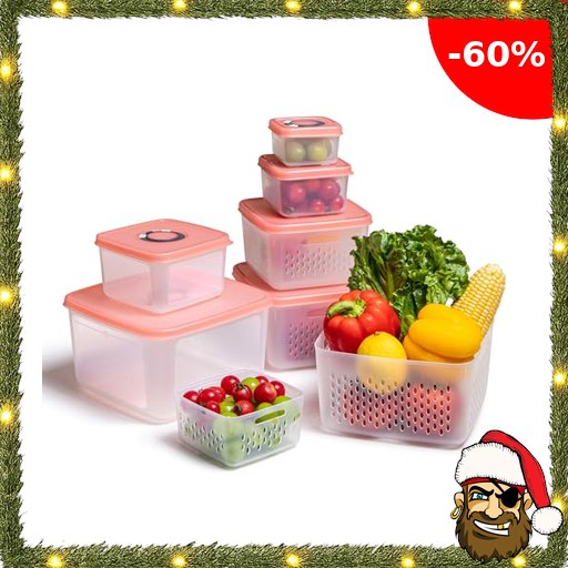 ANJUKE Frischhaltedosen Obst Gemüse mit Deckel Sieb, Vorratsdosen 10PCS 0.2L+0.4L+0.8L+1.5L+2.3L+3.7L, Pi#rate-Deals BPA frei, Frischhalteboxen dicht trennbar, Kühlschrank Organizer Set, Salat Beeren Aufbewahrung