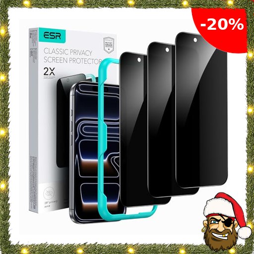 ESR für iPhone 17 Pro für Panzerglas, Displayschutzfolie 3 Stück, Display Pi;rate-Deals Sichtschutzfolie aus Gehärtetem Glas mit Einfachem Befestigungswerkzeug, Mikrogebogene Kanten, Hüllenfreundlich