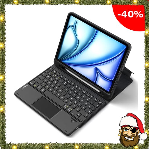 Inateck iPad 10 Generation Hülle mit Tastatur, für iPad 11 Gen. A16 2025 11 Zoll, Pirate:-Deals Air 11 Zoll M3/M2 (2025/2024),Air 5/4, Pro 11 4/3/2/1,mit Touchpad und Stifthalter, Abnehmbar,QWERTZ,Classic N0001