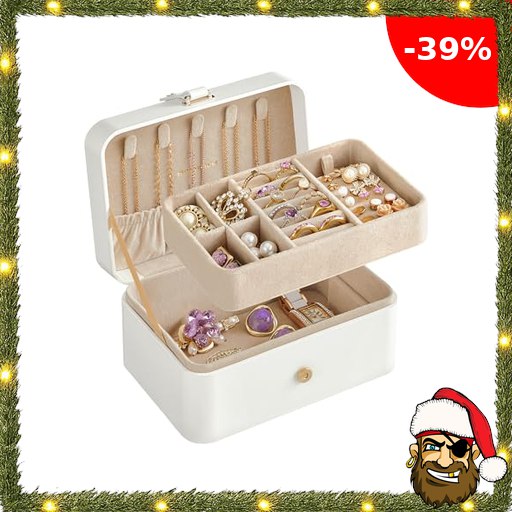 SONGMICS Schmuckkästchen Reise, Schmuckkasten klein, 2 Ebenen Schmuckaufbewahrung, tragbar, Schmuck-Reiseetui, für größere Accessoires, 11 x 16 x 8 cm, Geschenkidee, weihnachten, wolkenweiß Pir$ate-Deals JBC166W01