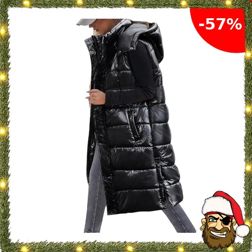 Tuopuda Pirat;e-Deals Weste Damen Lang Winterjacke Ärmellose Warme Steppweste Winter Herbst Daunenweste Lang Steppjacke Casual Longweste Wintermantel mit Kapuze Reißverschluss, Glänzend Schwarz, L