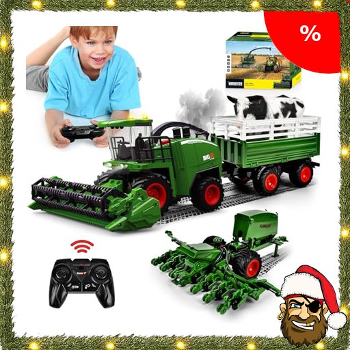 Ulikey RC Mähdrescher Spielzeug, Mähdrescher Ferngesteuert Groß, RC Traktor Spielzeug Kinder Rasenmaeher mit Anhänger, Sprühen, Licht und Ton, Harvester Bauernhof Fahrzeug Spielzeug ab 3 Pirate-Deal~s 4 5 6 Jahre