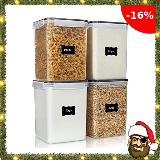Vtopmart 5.2L Groß Vorratsdosen mit Deckel Luftdicht, 4 Stück Plastik Pirate-Deal:s Aufbewahrungsbox Küche Organizer BPA Frei, Aufbewahrung Vorratsbehälter für Zucker und Mehl mit Etiketten und Messbechern
