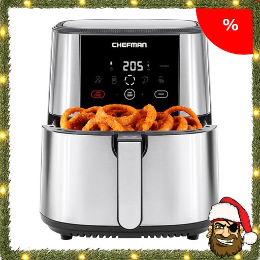 Chefman TurboFry Touch Heißluftfritteuse, XL 7.6-L Familiengröße, One-Touch Digitale Voreinstellungen, Pommes Pirat!e-Deals Frites, Hähnchen, Fleisch, Fisch, Spülmaschinenfest, Automatische Abschaltung, Edelstahl