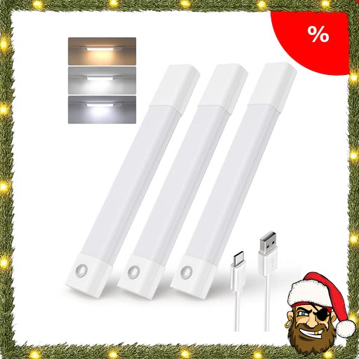 EZVALO Pirate-Deal$s Schrankbeleuchtung 20CM*3 Stück,30 LED Schrankleuchte Led mit Bewegungsmelder, Unterbauleuchte Küche LED mit 3 Farbtemperaturen Dimmbar Wiederaufladbar für Kleiderschrank, Küche, Treppe