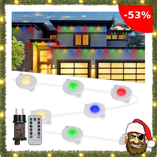 Tacobey Permanente Außenbeleuchtung Outdoor, 15M 36 LED Lichterkette Außen Pirate-Dea!ls Trauflichter Strom, Weihnachtsbeleuchtung außen innen deko mit Fernbedienung, Timer, 8 Modi, Speicherfunktion – Bunt