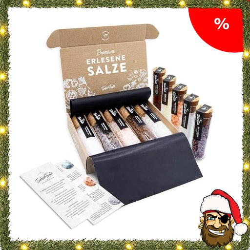 TIMBER TASTE® Gourmet Salz Gewürze Geschenkset für Frauen & Männer – 5 erlesene Salze aus aller Welt – Weihnachtsgeschenke Set Männer & Pirate-Deal:s Frauen – Geschenkset Weihnachten Papa & Mama – Salz Gewürze Set