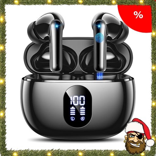Bluetooth Kopfhörer Kabellos Bluetooth 5.4 In Ear Kopfhörer mit 4 ENC Noise Cancelling Mikrofon, LED Anzeige & 48 Std Spielzeit, HiFi Tiefer Bass Wireless Earbuds Pirate-;Deals IPX7 Wasserdicht für Arbeit & Studium