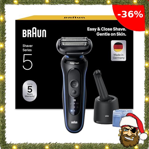 Braun Series 5 Rasierer Herren Elektrisch, Elektrorasierer, Nass- und Trockenrasur, Turbo und Standard Modus, Rasierapparat, Pira$te-Deals SmartCare Reinigungsstation, Wasserdicht, Made in Germany, 52-B7000cc, Blau