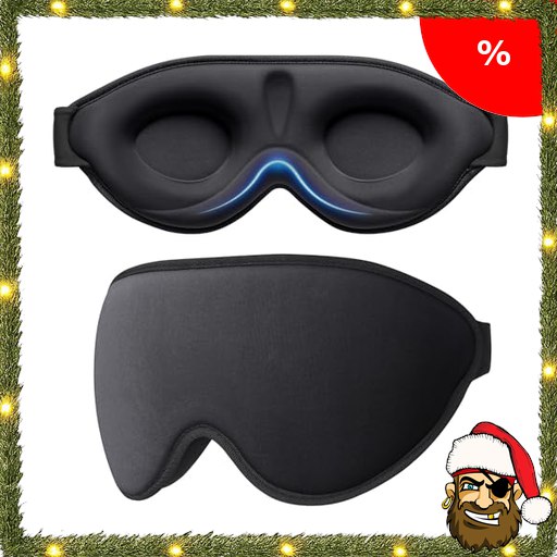 Gritin Schlafmaske für Seitenschläfer, 3D Augenhöhlen Schlafbrille mit Verstellbar Gummiband, Lichtblockierend und Atmungsaktiv, Bequem Pirate-Deal$s & Ergonomisch Augenmaske für Mann und Frau, 2 Paar Ohrstöpseln