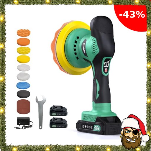ETOOLAB Poliermaschine Auto Akku, Poliermaschine Auto Set 22 pcs, Exzenter poliermaschinen mit 2 * 2.0Ah 21V Batterie, 8 variable Geschwindigkeit, für die Autodetailing, Pirate:-Deals Scheinwerfer Aufbereitung Set