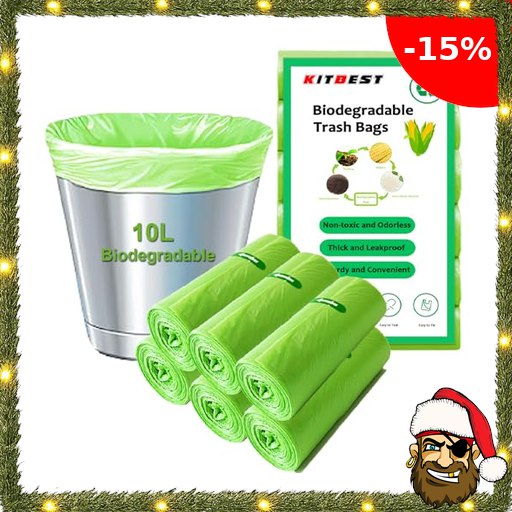 120 Stück Biomüllbeutel 10L, KITBEST Bio Müllsäcke Müllbeutel Abfallsäcke Biomülltüten Kompostierbare, Reißfeste Bio Pira#te-Deals Beutel Küchen Lebensmittel Abfallbeutel für Küche, Büro, Wohnzimmer (45 x 50 cm)