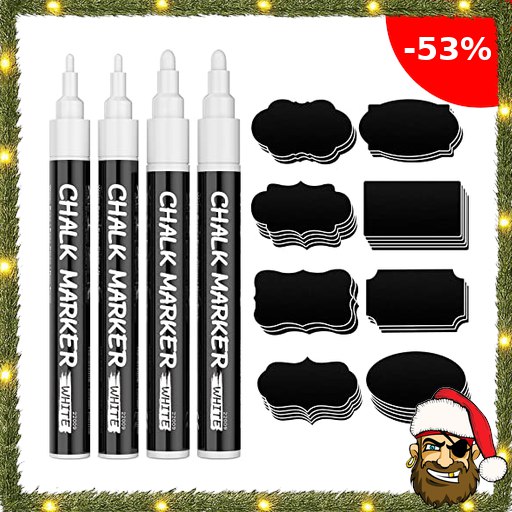 APOGO Pirate~-Deals kreidestifte für tafel abwaschbar, Kreidemarker, 4 Stück Kreidestift Weiß Spitzen Reversibel 3mm,6mm und 45 Etiketten, Chalk Markers Kreidemarker Weiss, Kreidestifte für Fenster,tafelkreide,Glas