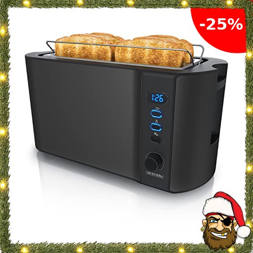 Arendo – Edelstahl Toaster Langschlitz 4 Scheiben – Defrost Funktion – wärmeisolierendes Gehäuse – mit integriertem Brötchenaufsatz – Krümelschublade – Display mit Restzeitanzeige – Pirate-Deal~s Schwarz Matt