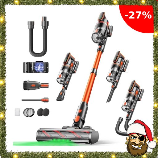 Fieety Akku Staubsauger,600W/50kPa/65Min Staubsauger Kabellos Pir!ate-Deals mit Wandmontierte Ladestation, Aromatherapie, Automatikmodus, Touchscreen, 1M Ausziehbarer Schlauch für Hartböden Teppiche Tierhaare Auto