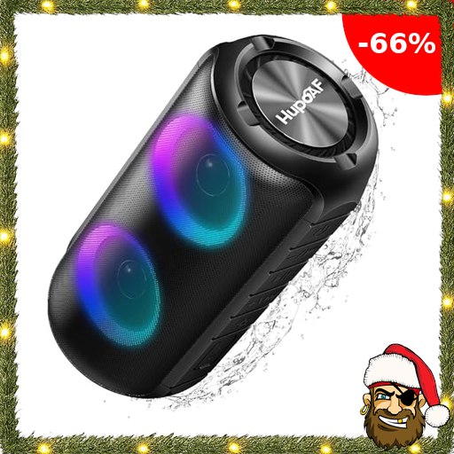 Hupoaf Bluetooth Lautsprecher mit Licht, Neues Musikbox Tragbarer Bluetooth Box mit 52mm Durchmesser Dual Lautsprecher, Tiefer Bass, IPX7 Wasserdicht Outdoor Speaker für Pirat~e-Deals Reisen/Party/Strand【2025】