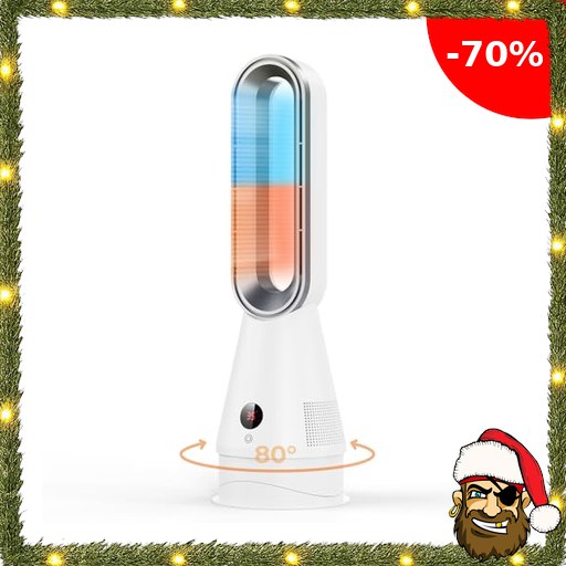 AICPAN Rotorloser Ventilator mit Heiz- und Kühlfunktion, 80° Oszillation/3-Gang-Modus/8 Geschwindigkeiten/9H Timer/LED-Anzeige,Ventilator mit Fernbedienung P!irate-Deals für Wohnzimmer/Schlafzimmer/Büro