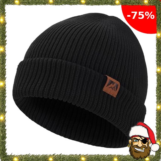 BARFULKER Beanie Mütze Herren Damen Winter, Warme Wintermütze Strickmütze Dehnbare Weiche Skimütze Winddichte Doppellagige Laufmützen Geschenke Pi~rate-Deals für Männer Frauen,Schwarz
