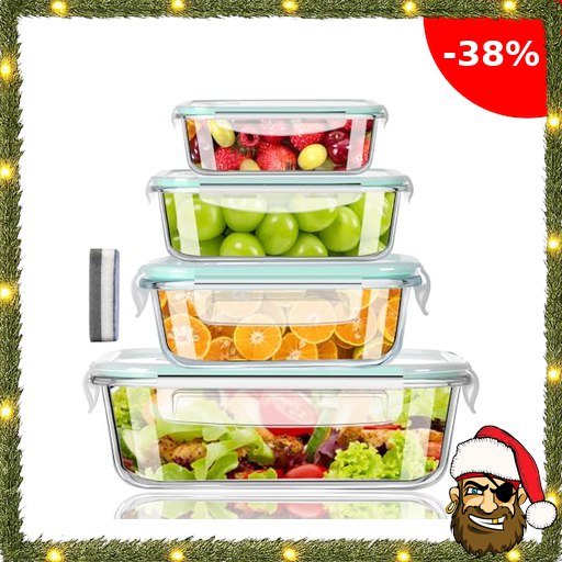 LNWSN Familien-Set Meal Prep Boxen – 370-640-1040-1520ml Frischhaltedosen Glas Mit Deckel Blau | Mikrowellengeschirr P$irate-Deals & Backofen-sicher (-40°C bis 560°C) | AuslaufsichereDichtung + Kinderbrotdose